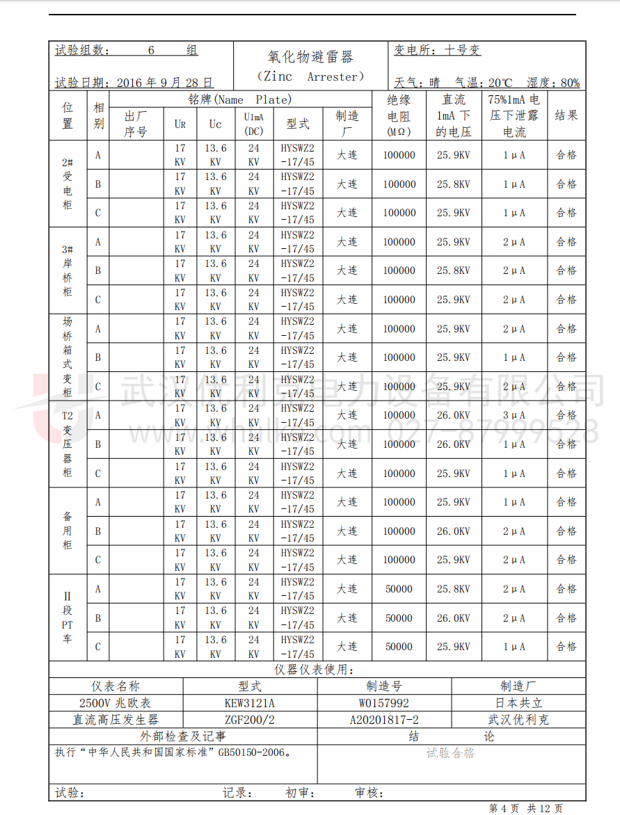• 數(shù)據(jù)整理與報告:對試驗過程中記錄的數(shù)據(jù)進行整理和分析,編寫試驗報告。試驗報告應(yīng)包括被試設(shè)備的基本信息、試驗條件、測量數(shù)據(jù)、試驗結(jié)果等內(nèi)容,為設(shè)備的絕緣狀況評估提供依據(jù)。